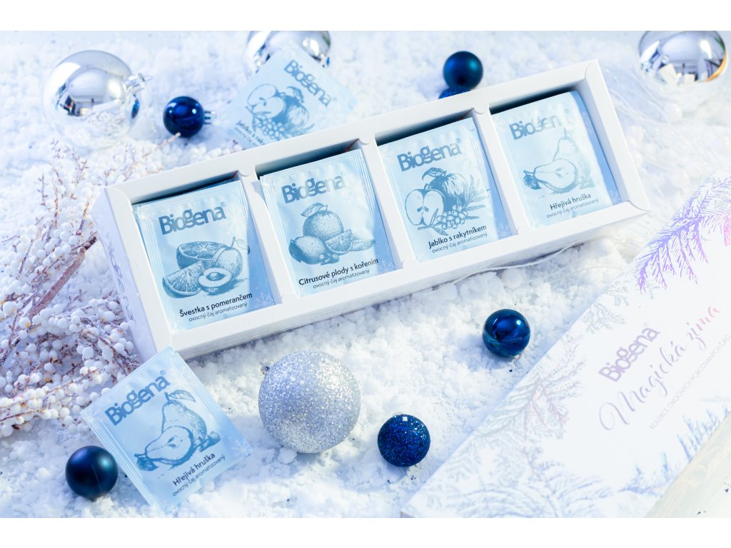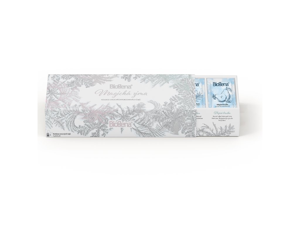 Zažijte kouzlo zimního období s čajovou kazetou BIOGENA Magická zima. Tato exkluzivní dárková sada v nádherném vánočním designu je stvořená pro chvíle pohody, odpočinku a sváteční atmosféry. Ukryté v ní najdete čtyři jedinečné čajové směsi, které potěší rozmanitostí chutí i vůní – svěží a kořeněné citrusové plody, lahodně sladkou hrušku, švestku s pomerančem plnou chuťových kontrastů a přírodní osvěžení v podobě jablka s rakytníkem. Každý šálek vás zahřeje v chladných dnech, navodí pocit útulna a vnese do běžných okamžiků kousek sváteční magie. BIOGENA Magická zima je ideálním dárkem pro vaše blízké, ale i skvělou volbou pro chvíle, kdy si chcete dopřát něco výjimečného jen sami pro sebe.