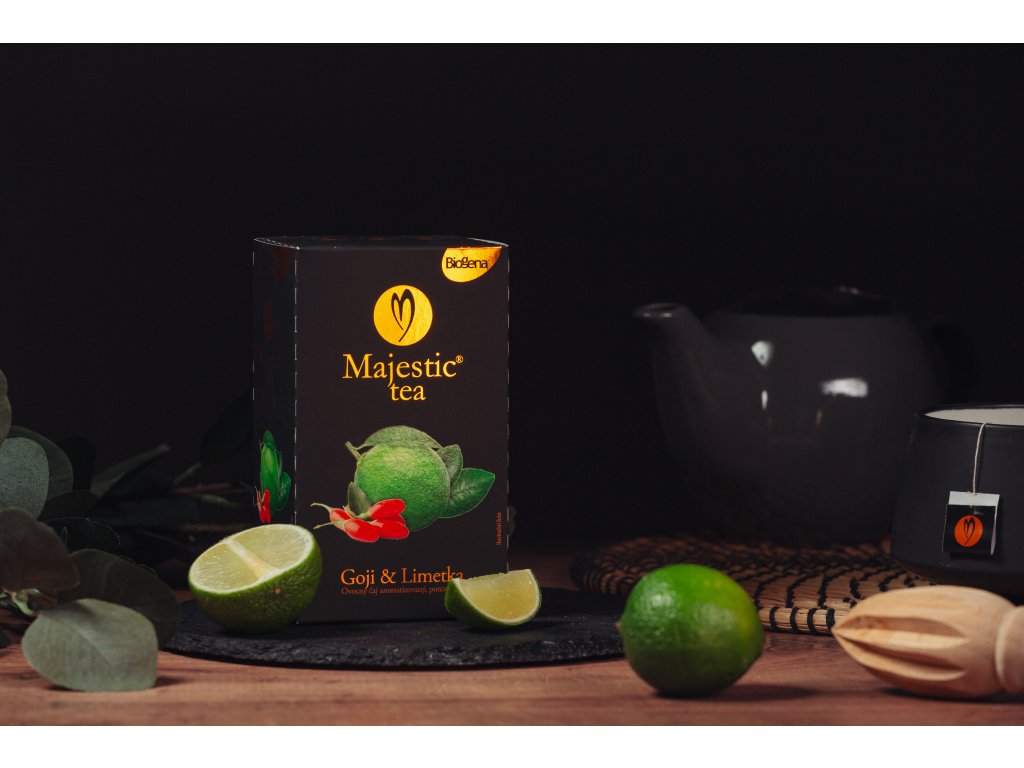 Biogena Majestic Tea Goji & Limetka – spojení vitality goji a svěžesti limetky v prémiovém čaji, který rozzáří den, povzbudí tělo a potěší smysly svou harmonickou chutí.